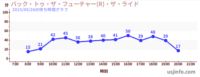 • バック・トゥ・ザ・フューチャー(R)・ザ・ライド$B$N(B2015年08月26日の待ち時間