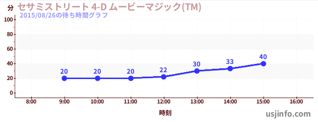 • セサミストリート 4-D ムービーマジック(TM)$B$N(B2015年08月26日の待ち時間