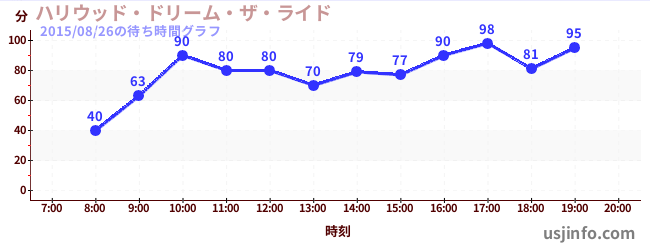 • ハリウッド・ドリーム・ザ・ライド$B$N(B2015年08月26日の待ち時間