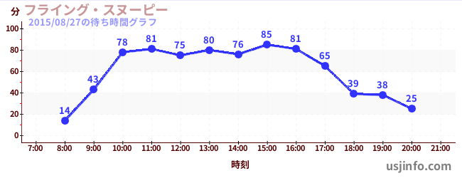 • フライング・スヌーピー$B$N(B2015年08月27日の待ち時間