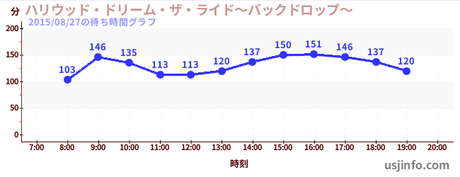 • ハリウッド・ドリーム・ザ・ライド〜バックドロップ〜$B$N(B2015年08月27日の待ち時間