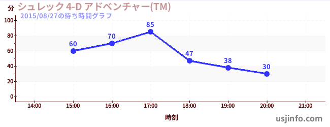 • シュレック 4-D アドベンチャー(TM)$B$N(B2015年08月27日の待ち時間
