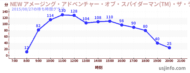 • NEW アメージング・アドベンチャー・オブ・スパイダーマン(TM)・ザ・ライド 4K3D$B$N(B2015年08月27日の待ち時間