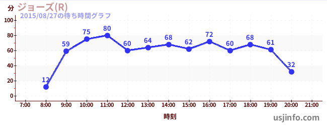 • ジョーズ(R)$B$N(B2015年08月27日の待ち時間