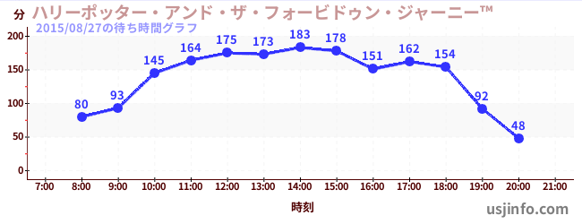 • ハリーポッター・アンド・ザ・フォービドゥン・ジャーニー™$B$N(B2015年08月27日の待ち時間