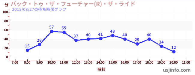 • バック・トゥ・ザ・フューチャー(R)・ザ・ライド$B$N(B2015年08月27日の待ち時間