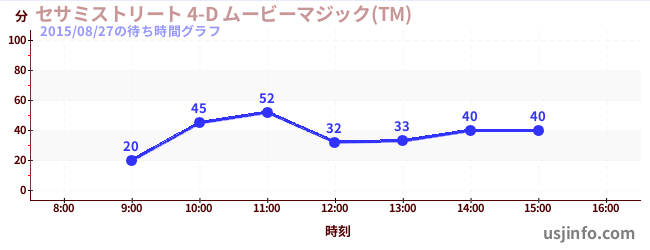 • セサミストリート 4-D ムービーマジック(TM)$B$N(B2015年08月27日の待ち時間