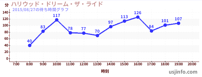 • ハリウッド・ドリーム・ザ・ライド$B$N(B2015年08月27日の待ち時間