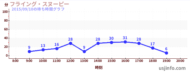 • フライング・スヌーピー$B$N(B2015年09月10日の待ち時間