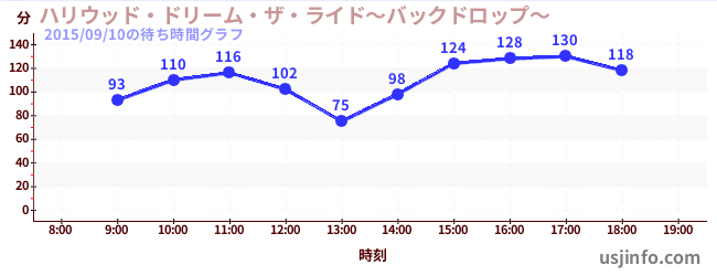 • ハリウッド・ドリーム・ザ・ライド〜バックドロップ〜$B$N(B2015年09月10日の待ち時間