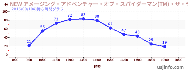 • NEW アメージング・アドベンチャー・オブ・スパイダーマン(TM)・ザ・ライド 4K3D$B$N(B2015年09月10日の待ち時間