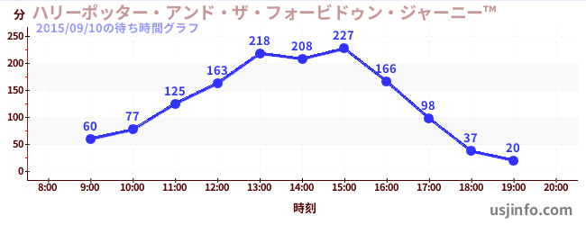 • ハリーポッター・アンド・ザ・フォービドゥン・ジャーニー™$B$N(B2015年09月10日の待ち時間