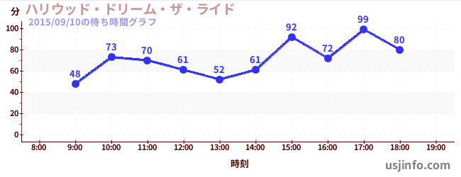 • ハリウッド・ドリーム・ザ・ライド$B$N(B2015年09月10日の待ち時間