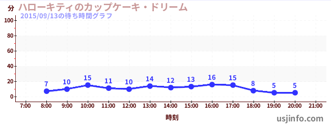 • ハローキティのカップケーキ・ドリーム$B$N(B2015年09月13日の待ち時間