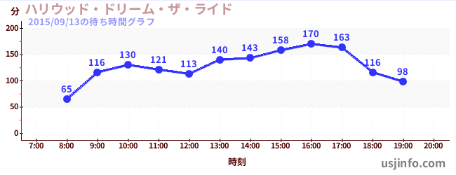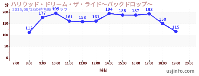 • ハリウッド・ドリーム・ザ・ライド〜バックドロップ〜$B$N(B2015年09月13日の待ち時間
