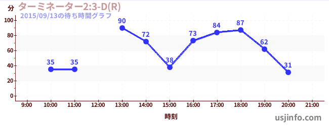 • ターミネーター2:3-D(R)$B$N(B2015年09月13日の待ち時間