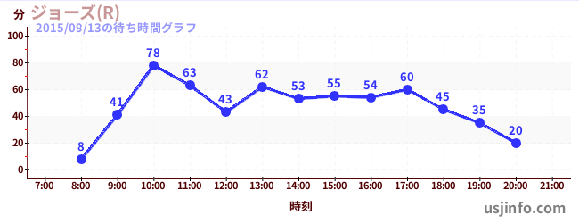 • ジョーズ(R)$B$N(B2015年09月13日の待ち時間
