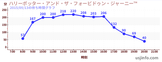 • ハリーポッター・アンド・ザ・フォービドゥン・ジャーニー™$B$N(B2015年09月13日の待ち時間