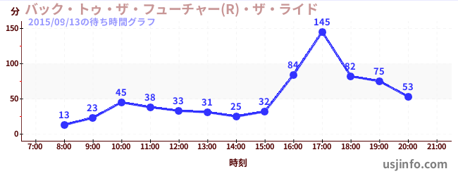 • バック・トゥ・ザ・フューチャー(R)・ザ・ライド$B$N(B2015年09月13日の待ち時間