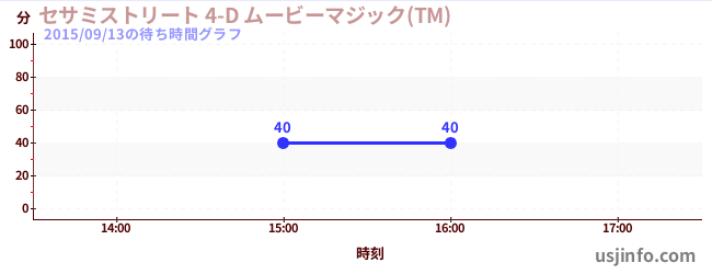 • セサミストリート 4-D ムービーマジック(TM)$B$N(B2015年09月13日の待ち時間