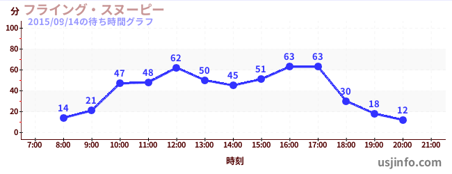 • フライング・スヌーピー$B$N(B2015年09月14日の待ち時間