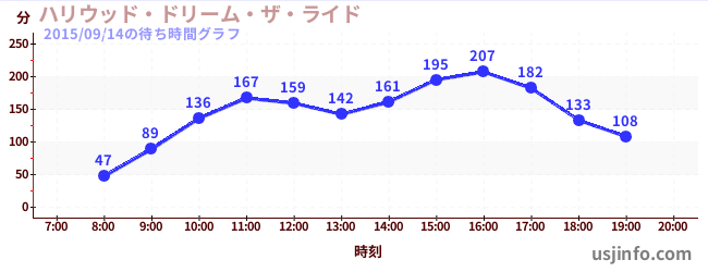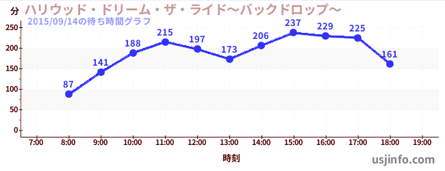 • ハリウッド・ドリーム・ザ・ライド〜バックドロップ〜$B$N(B2015年09月14日の待ち時間