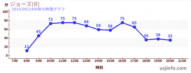 • ジョーズ(R)$B$N(B2015年09月14日の待ち時間