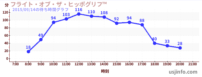 • フライト・オブ・ザ・ヒッポグリフ™$B$N(B2015年09月14日の待ち時間