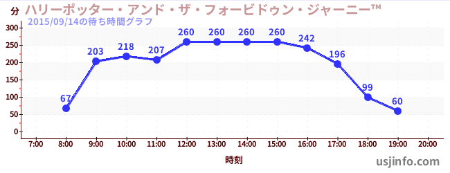 • ハリーポッター・アンド・ザ・フォービドゥン・ジャーニー™$B$N(B2015年09月14日の待ち時間