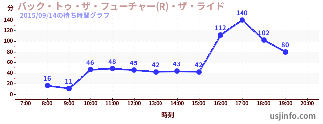 • バック・トゥ・ザ・フューチャー(R)・ザ・ライド$B$N(B2015年09月14日の待ち時間