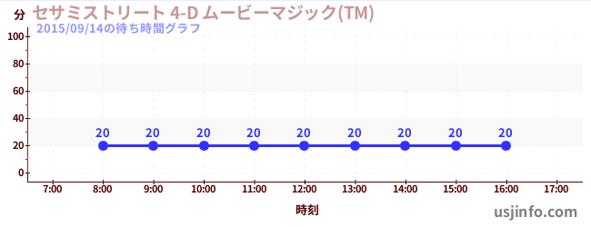 • セサミストリート 4-D ムービーマジック(TM)$B$N(B2015年09月14日の待ち時間