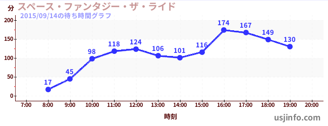 • スペース・ファンタジー・ザ・ライド$B$N(B2015年09月14日の待ち時間