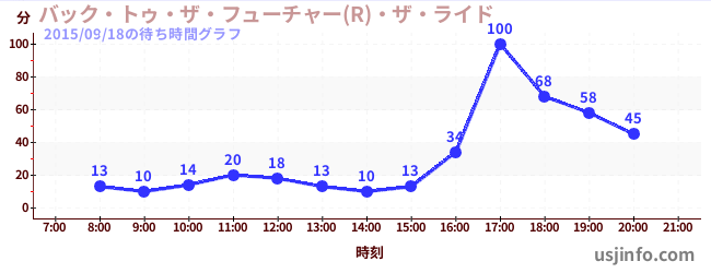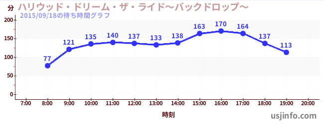 • ハリウッド・ドリーム・ザ・ライド〜バックドロップ〜$B$N(B2015年09月18日の待ち時間