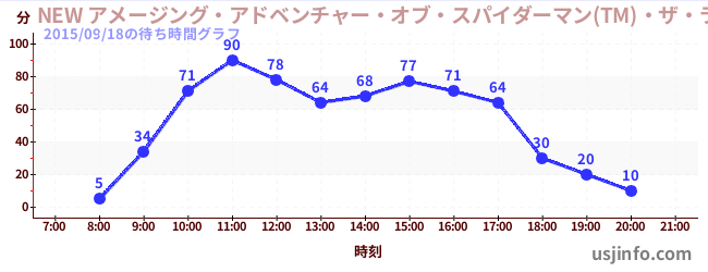• NEW アメージング・アドベンチャー・オブ・スパイダーマン(TM)・ザ・ライド 4K3D$B$N(B2015年09月18日の待ち時間