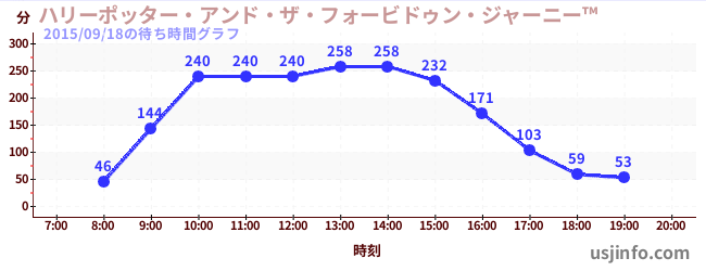 • ハリーポッター・アンド・ザ・フォービドゥン・ジャーニー™$B$N(B2015年09月18日の待ち時間