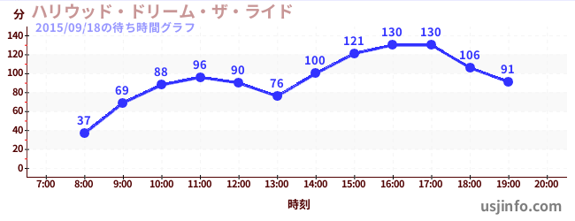 • ハリウッド・ドリーム・ザ・ライド$B$N(B2015年09月18日の待ち時間