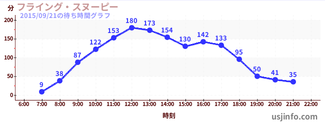 • フライング・スヌーピー$B$N(B2015年09月21日の待ち時間