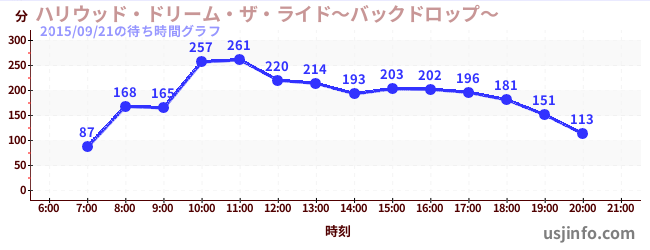 • ハリウッド・ドリーム・ザ・ライド〜バックドロップ〜$B$N(B2015年09月21日の待ち時間