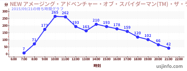 • NEW アメージング・アドベンチャー・オブ・スパイダーマン(TM)・ザ・ライド 4K3D$B$N(B2015年09月21日の待ち時間