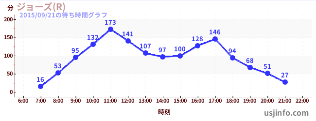 • ジョーズ(R)$B$N(B2015年09月21日の待ち時間
