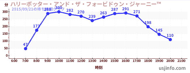 • ハリーポッター・アンド・ザ・フォービドゥン・ジャーニー™$B$N(B2015年09月21日の待ち時間