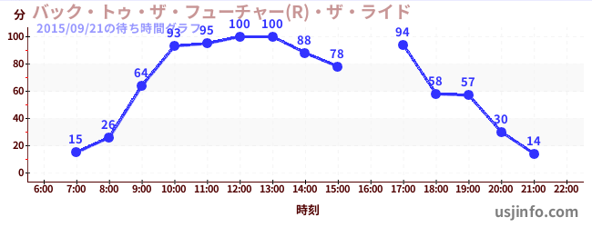 • バック・トゥ・ザ・フューチャー(R)・ザ・ライド$B$N(B2015年09月21日の待ち時間