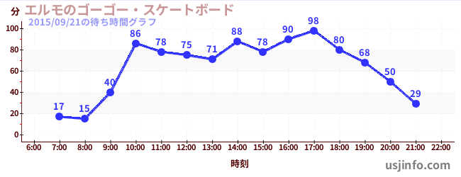 • エルモのゴーゴー・スケートボード$B$N(B2015年09月21日の待ち時間
