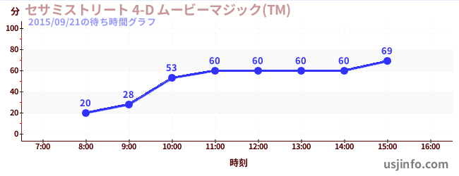 • セサミストリート 4-D ムービーマジック(TM)$B$N(B2015年09月21日の待ち時間