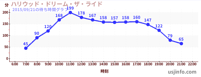 • ハリウッド・ドリーム・ザ・ライド$B$N(B2015年09月21日の待ち時間