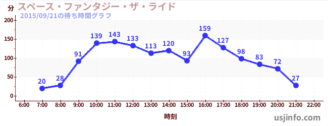 • スペース・ファンタジー・ザ・ライド$B$N(B2015年09月21日の待ち時間