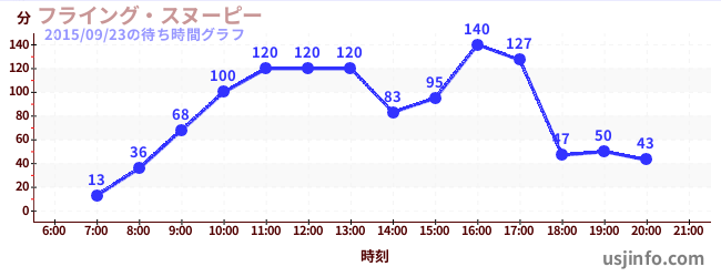 • フライング・スヌーピー$B$N(B2015年09月23日の待ち時間