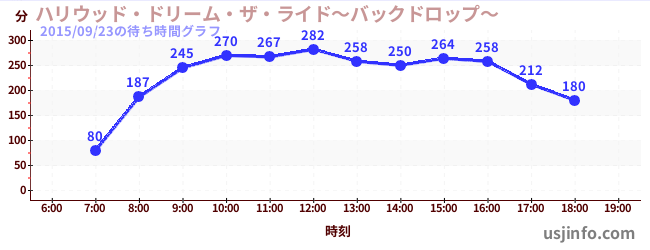 • ハリウッド・ドリーム・ザ・ライド〜バックドロップ〜$B$N(B2015年09月23日の待ち時間