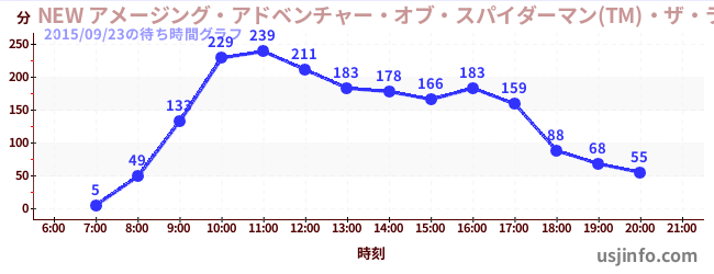 • NEW アメージング・アドベンチャー・オブ・スパイダーマン(TM)・ザ・ライド 4K3D$B$N(B2015年09月23日の待ち時間
