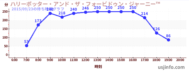 • ハリーポッター・アンド・ザ・フォービドゥン・ジャーニー™$B$N(B2015年09月23日の待ち時間